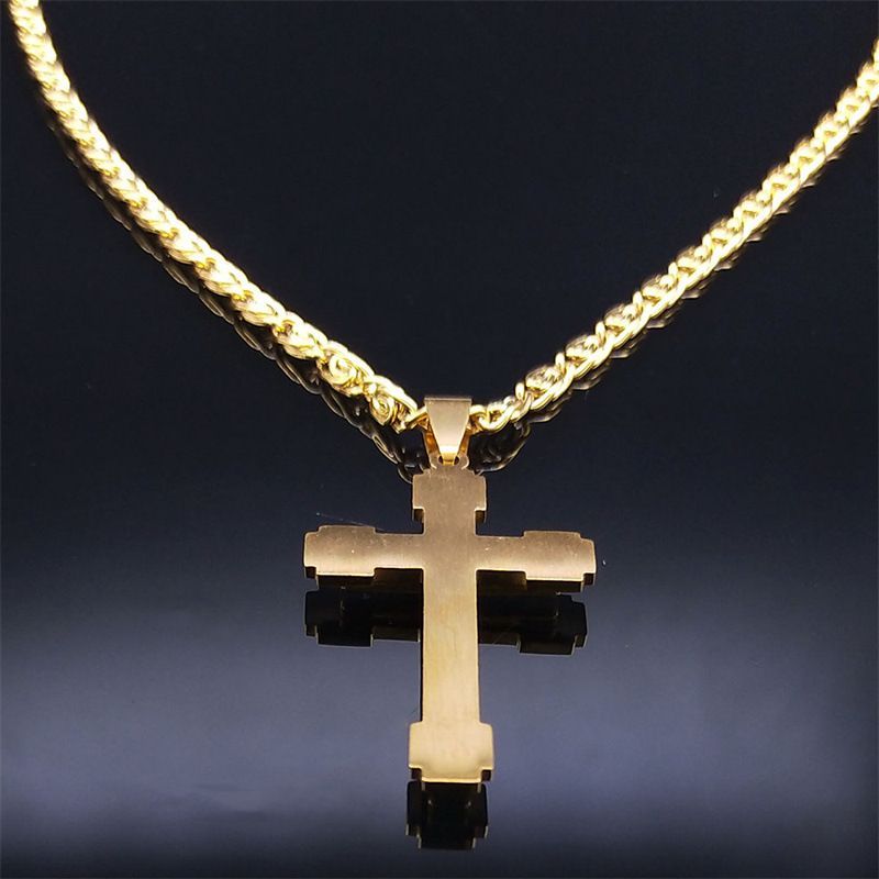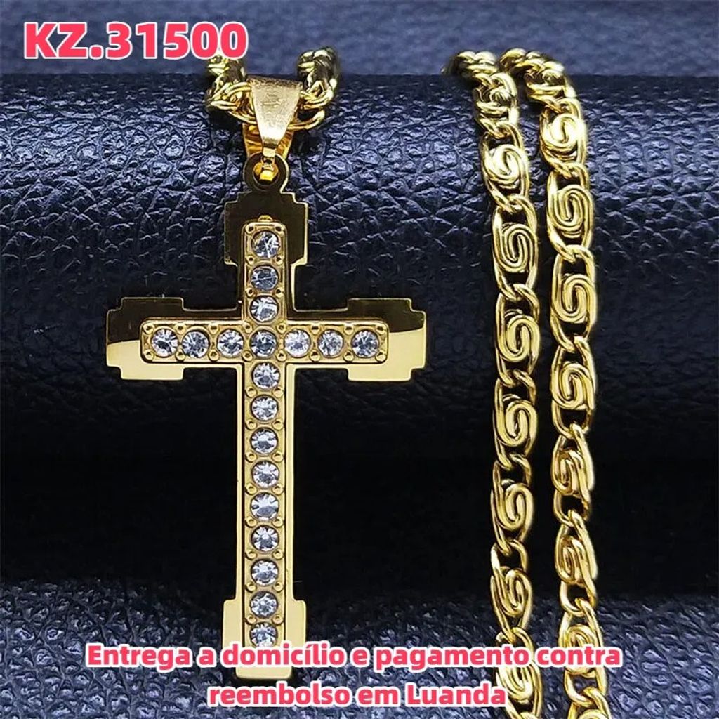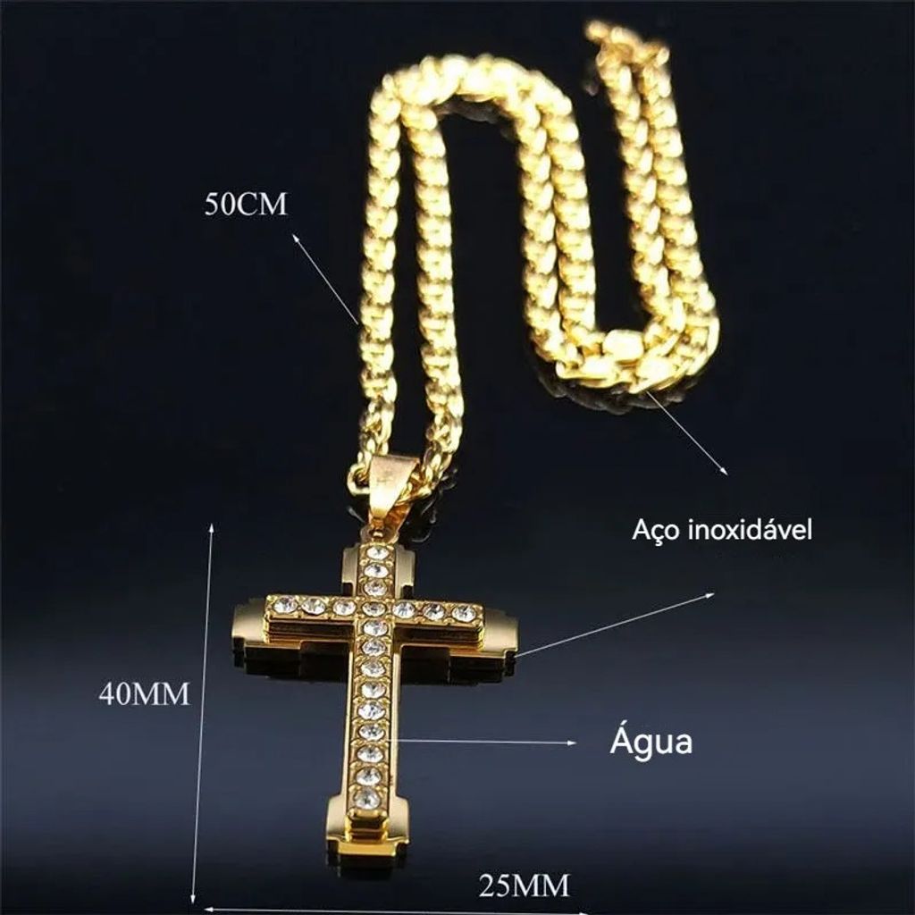 Novo Colar de Cruz em Aço Inoxidável Masculino, Pingente com Zircônias, Revestimento por Eletroplastia a Vácuo (Não Desbota), Acessório no Estilo Hip Hop